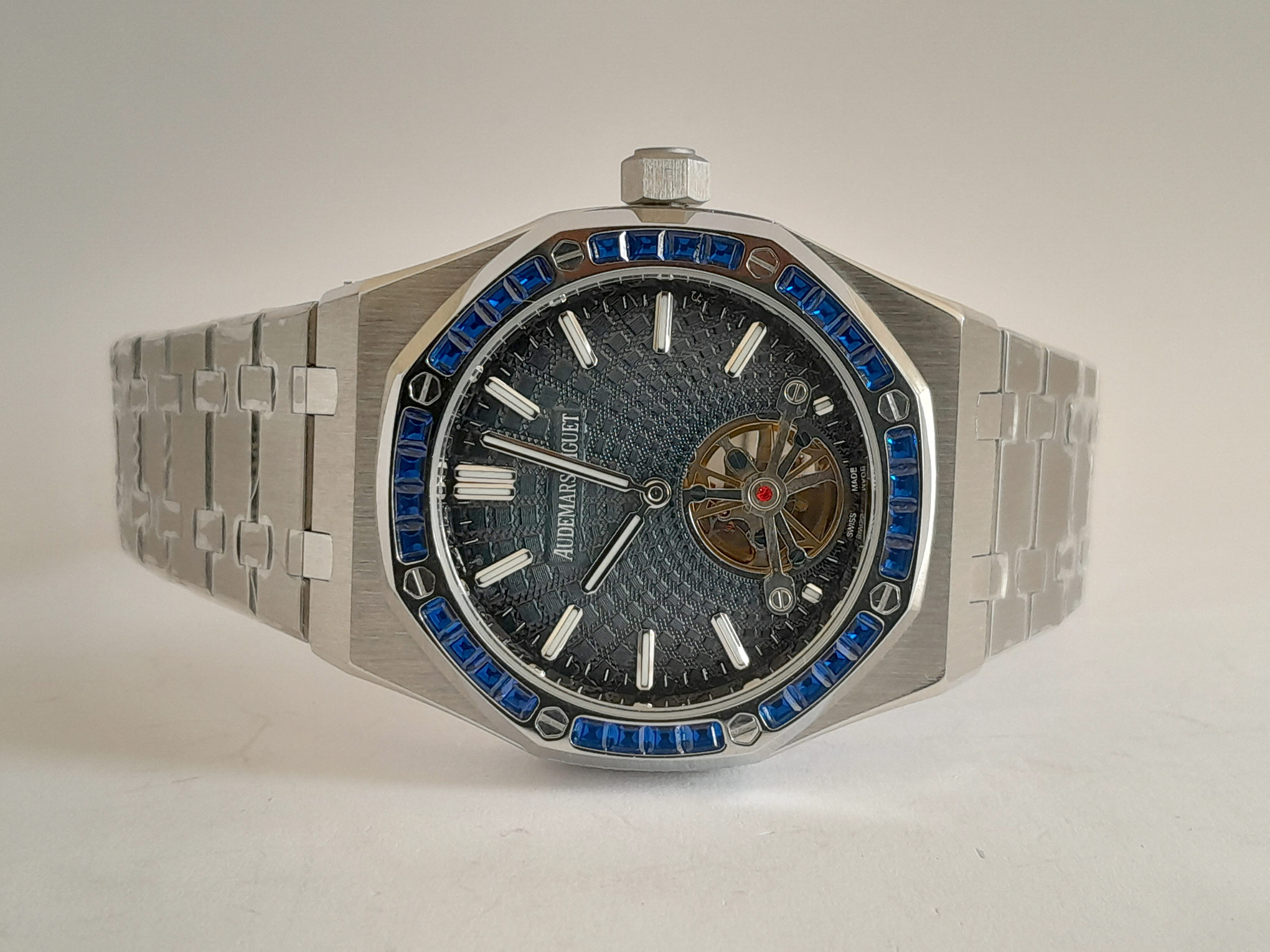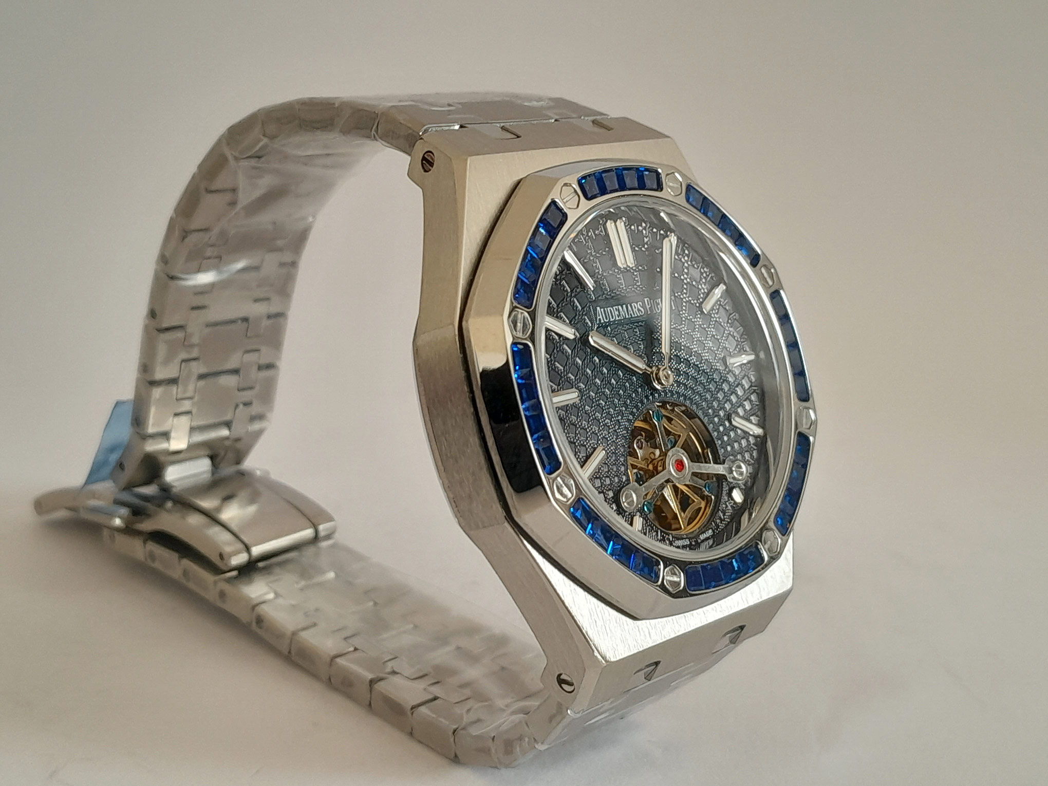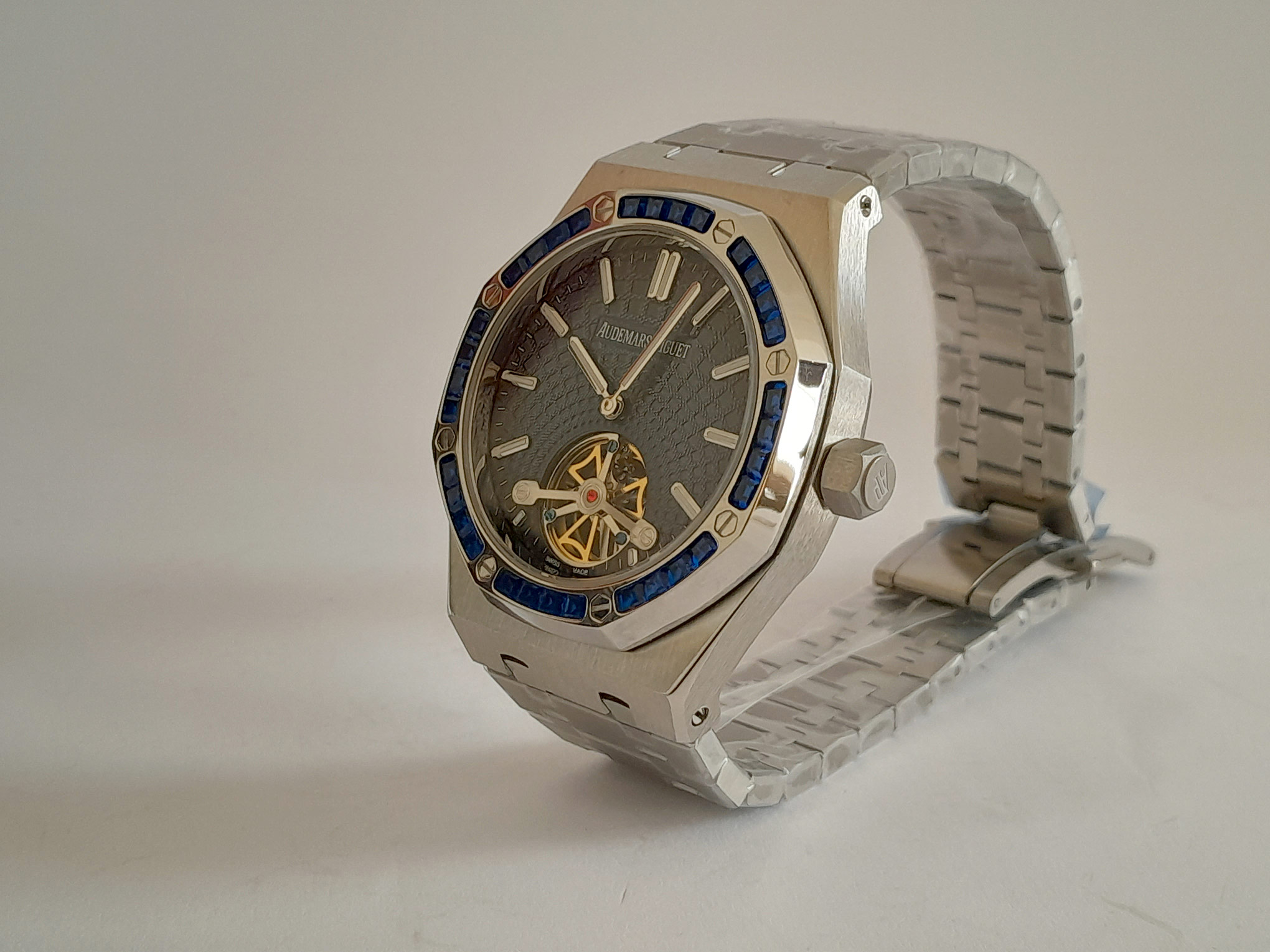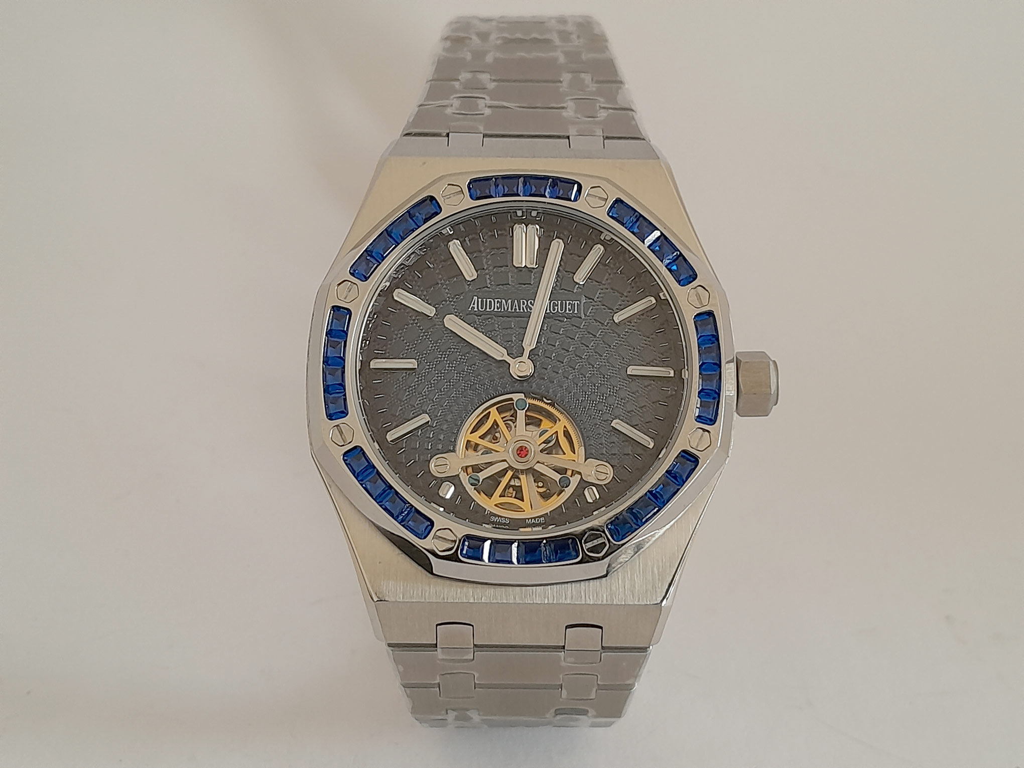 REL AUDEMARS PIGUET ROYAL OAK -ACERO CAJA ACERO- BISEL PIEDRAS BAQUETITAS AZUL C/AZUL TURBILLON