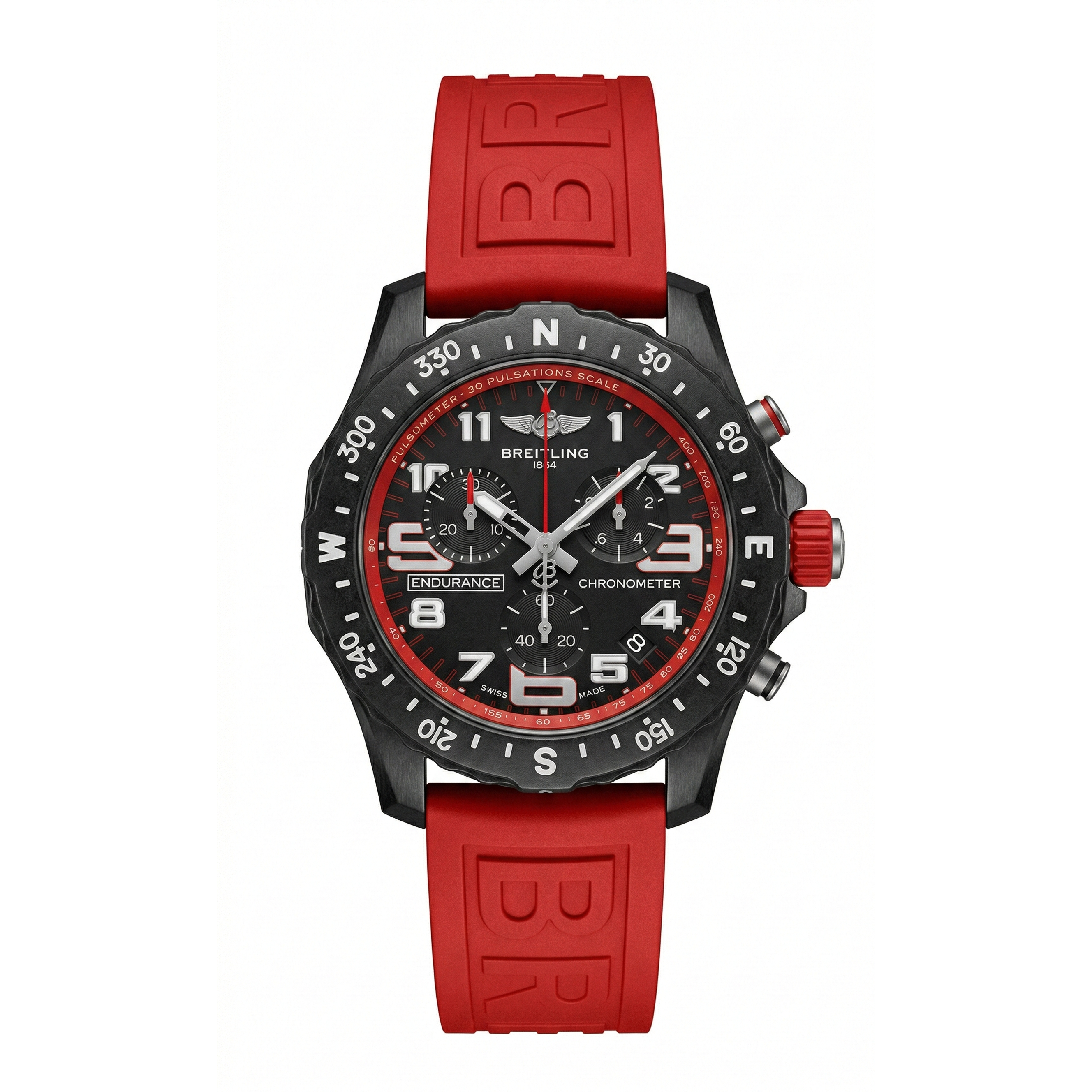 | Rel Breitling Endurance Pro Caucho Rojo Caja Pavonada Tachymeter Ngr C/Roja 3 Esf #Blc Crono |