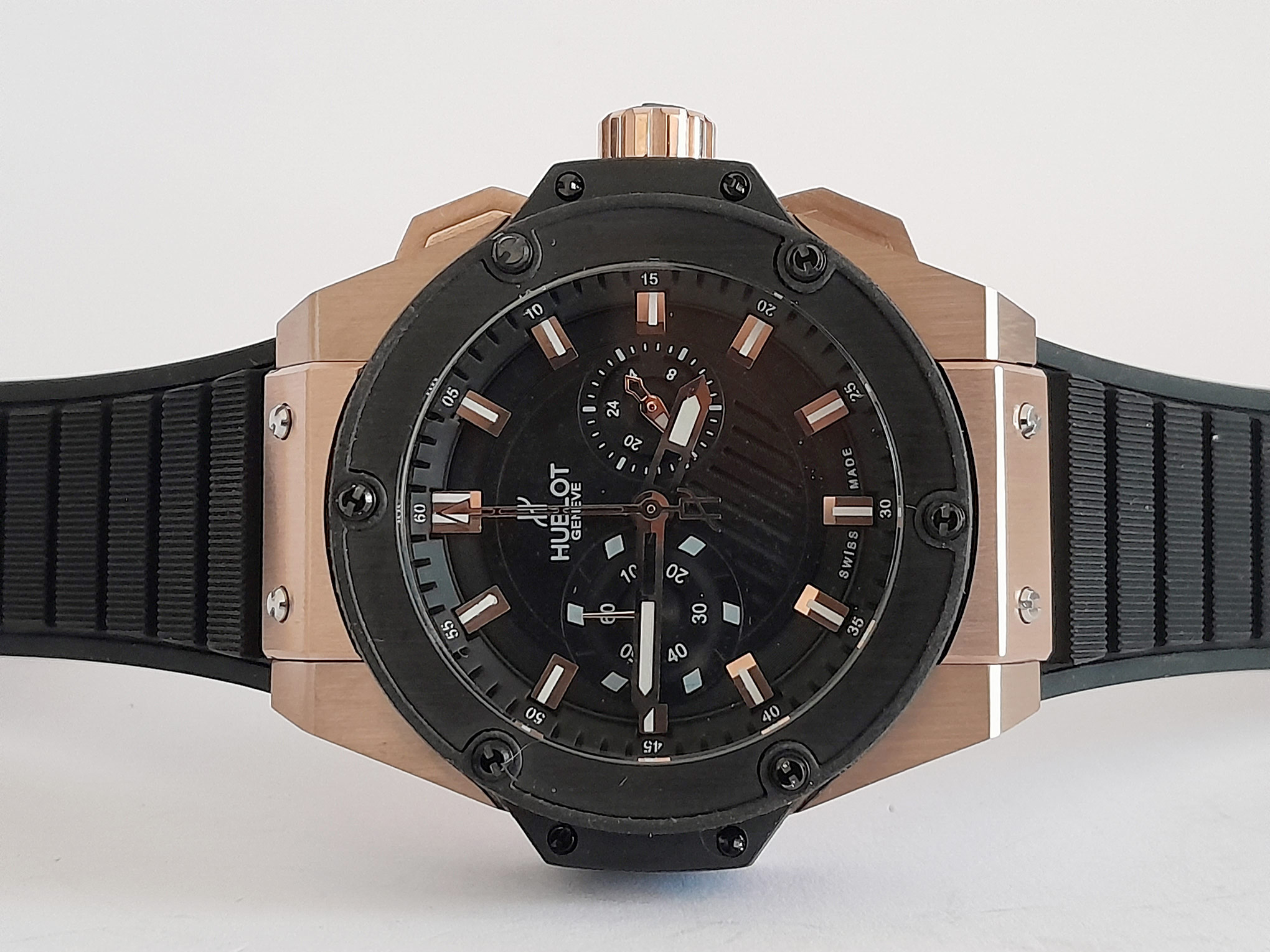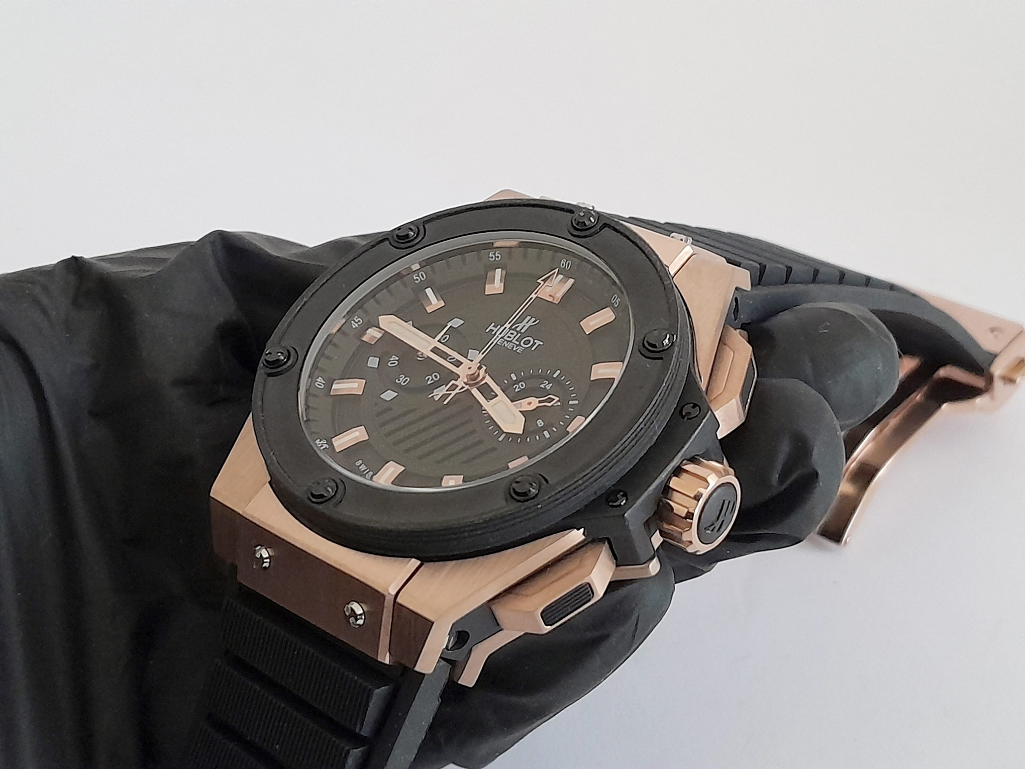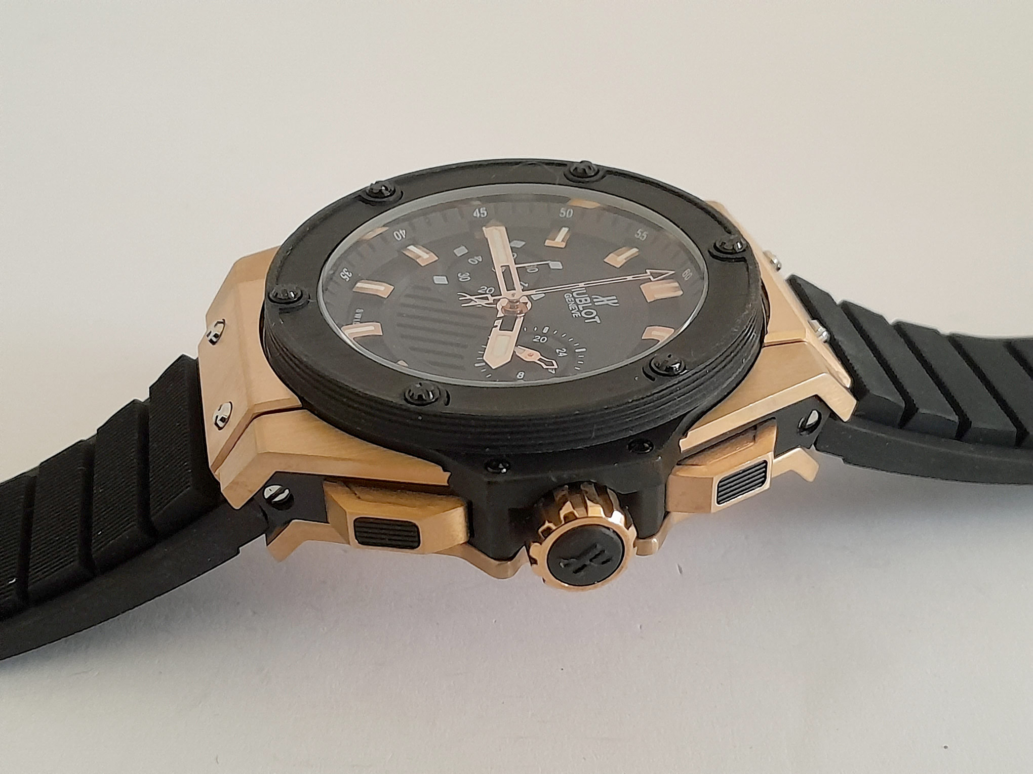 RELOJ HUBLOT SLIM CAUCHO NGR CAJA ORO ROSA FILO PAVONADO C/NGR POLICARBONATO SENCILLO