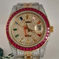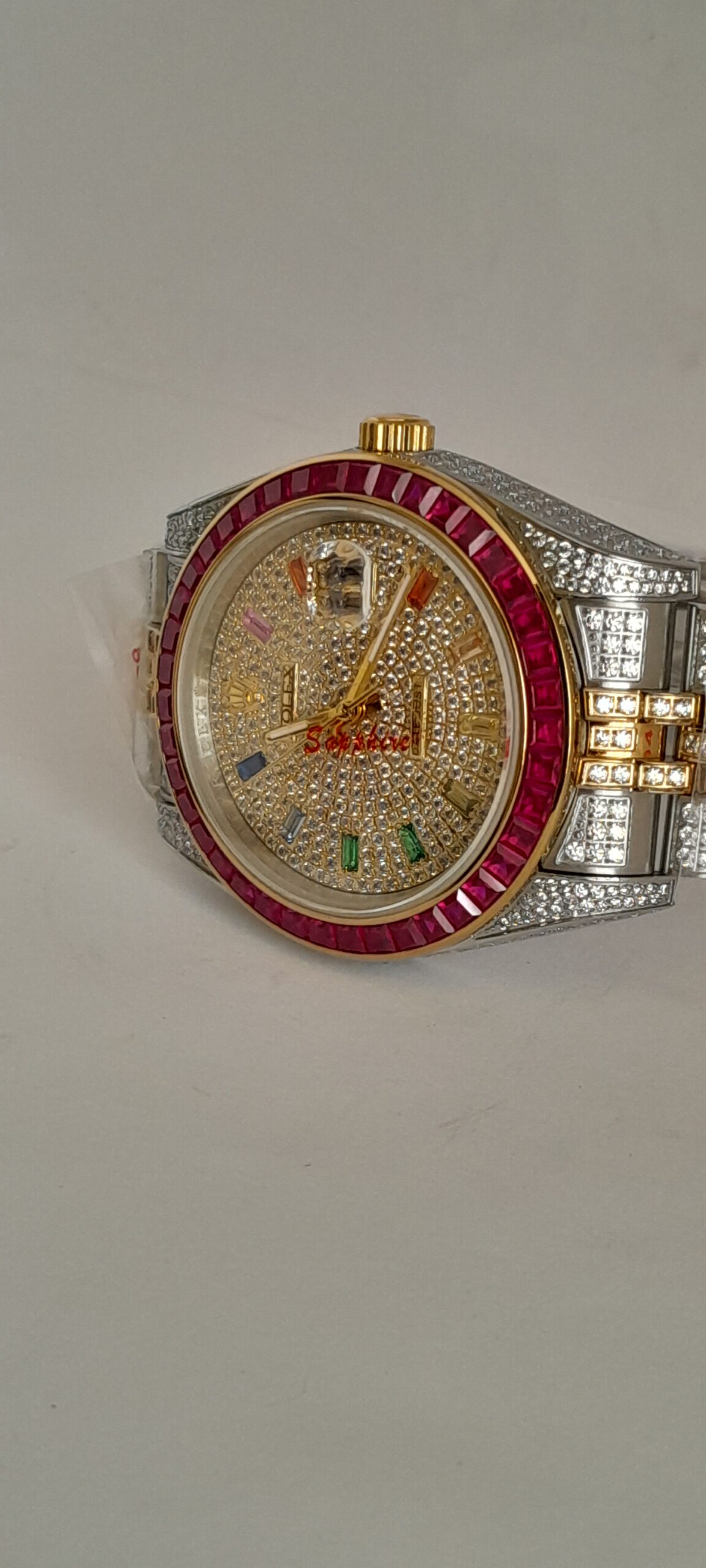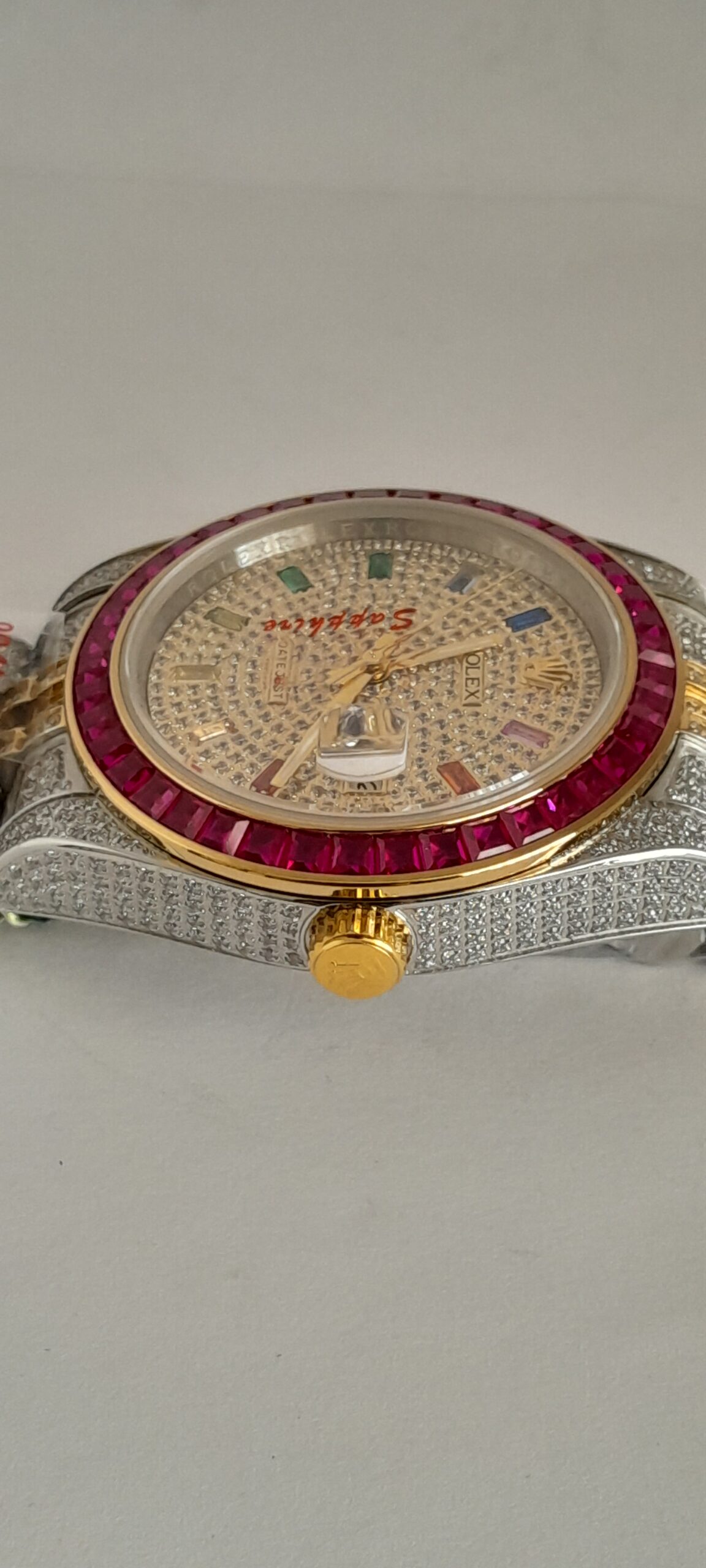 | REL SWISS ROLEX DATE JUST ACERO ORO ROSA FULL DIAMOND BISEL ZAFIROS C/FULL DIAMOND #PIEDRAS COLORES AUTOMATICO |