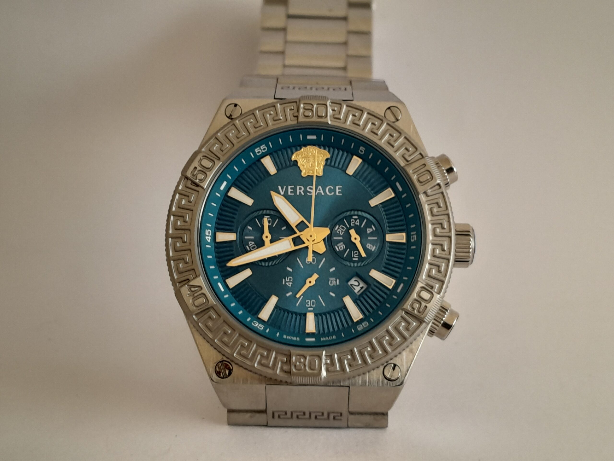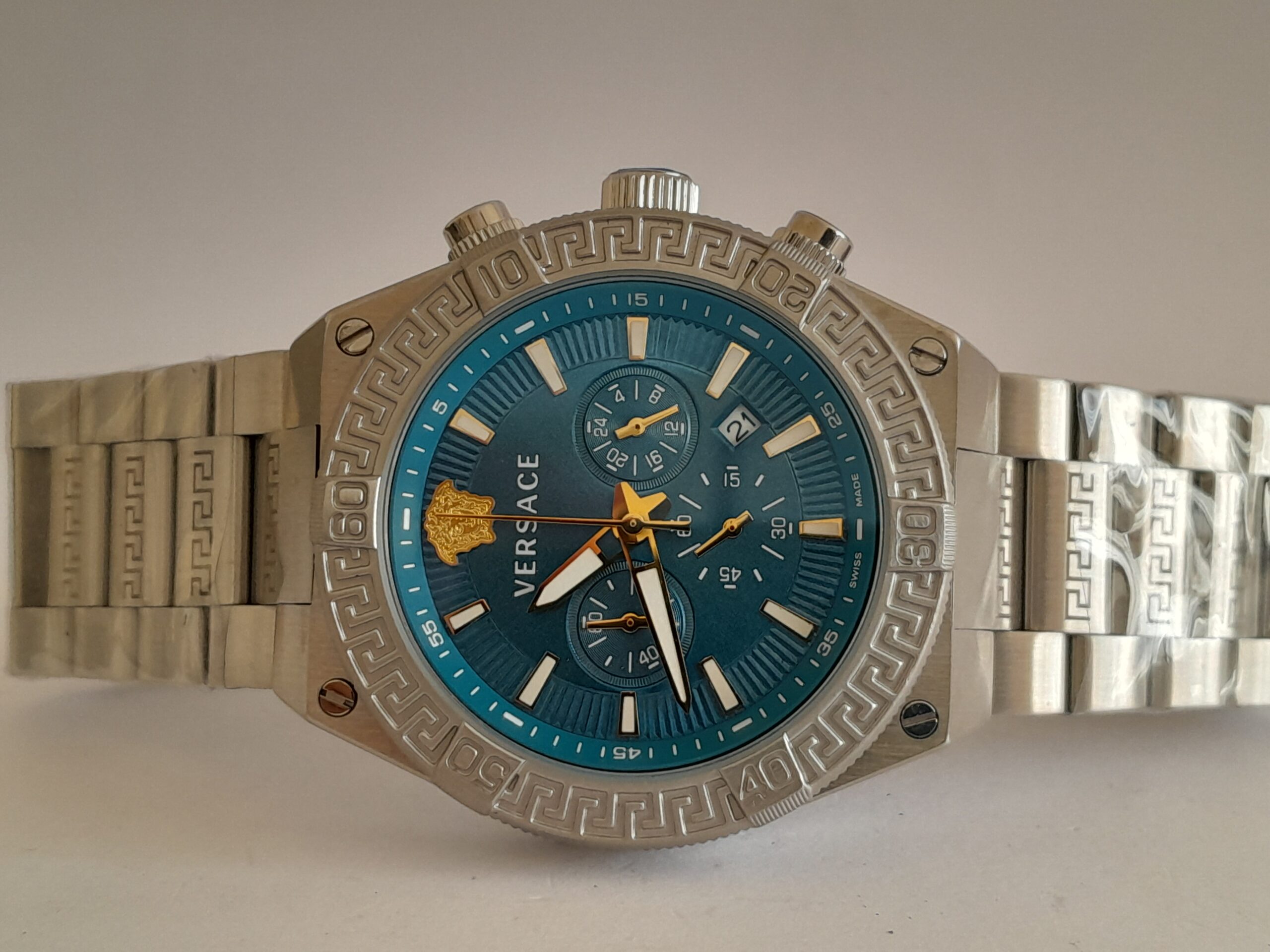 | REL VERSACE ACERO CAJA ACERO BISEL GRECAS VERSACE C/AZUL LOGO VER CRONOMETRO |