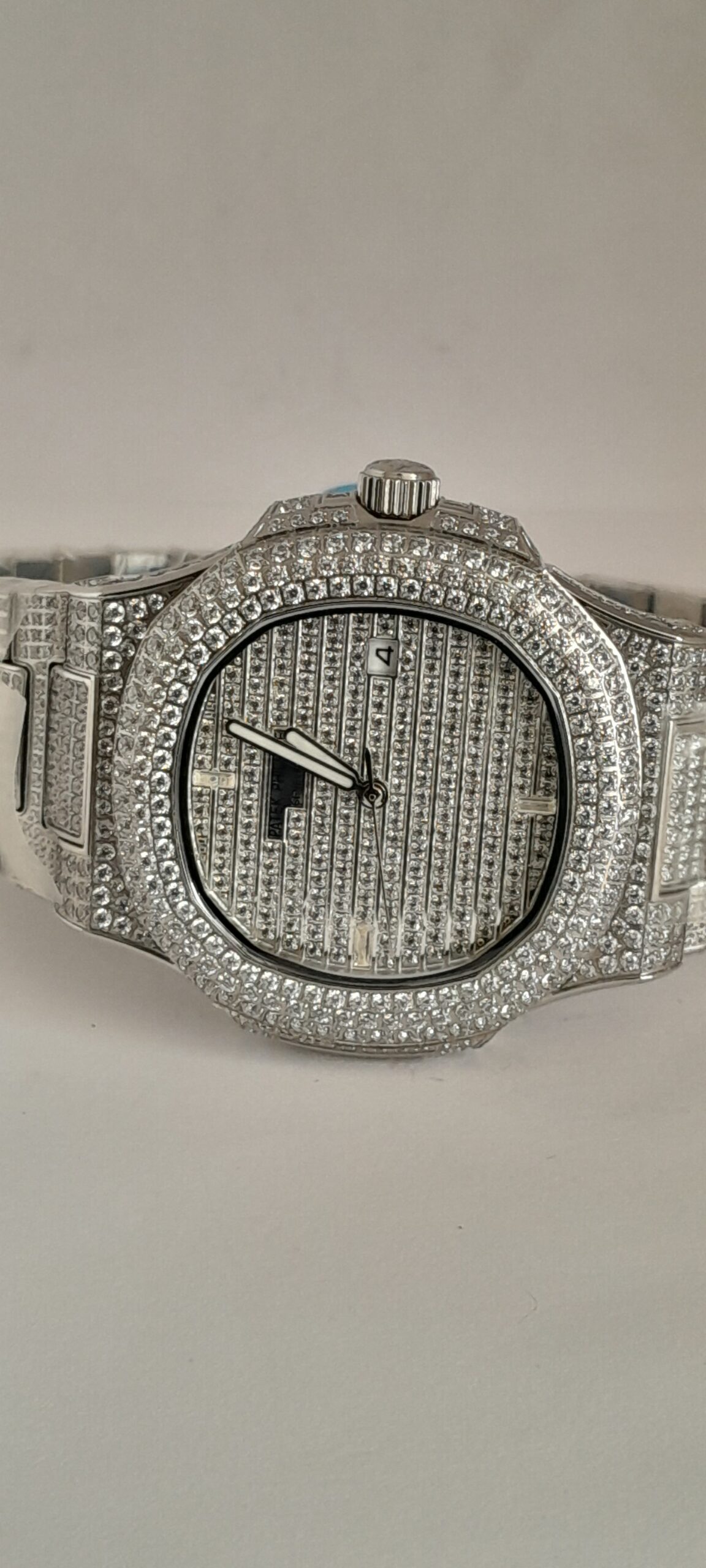 Swiss Patek Philippe Nautilus Oro Blanco Full Diamond
