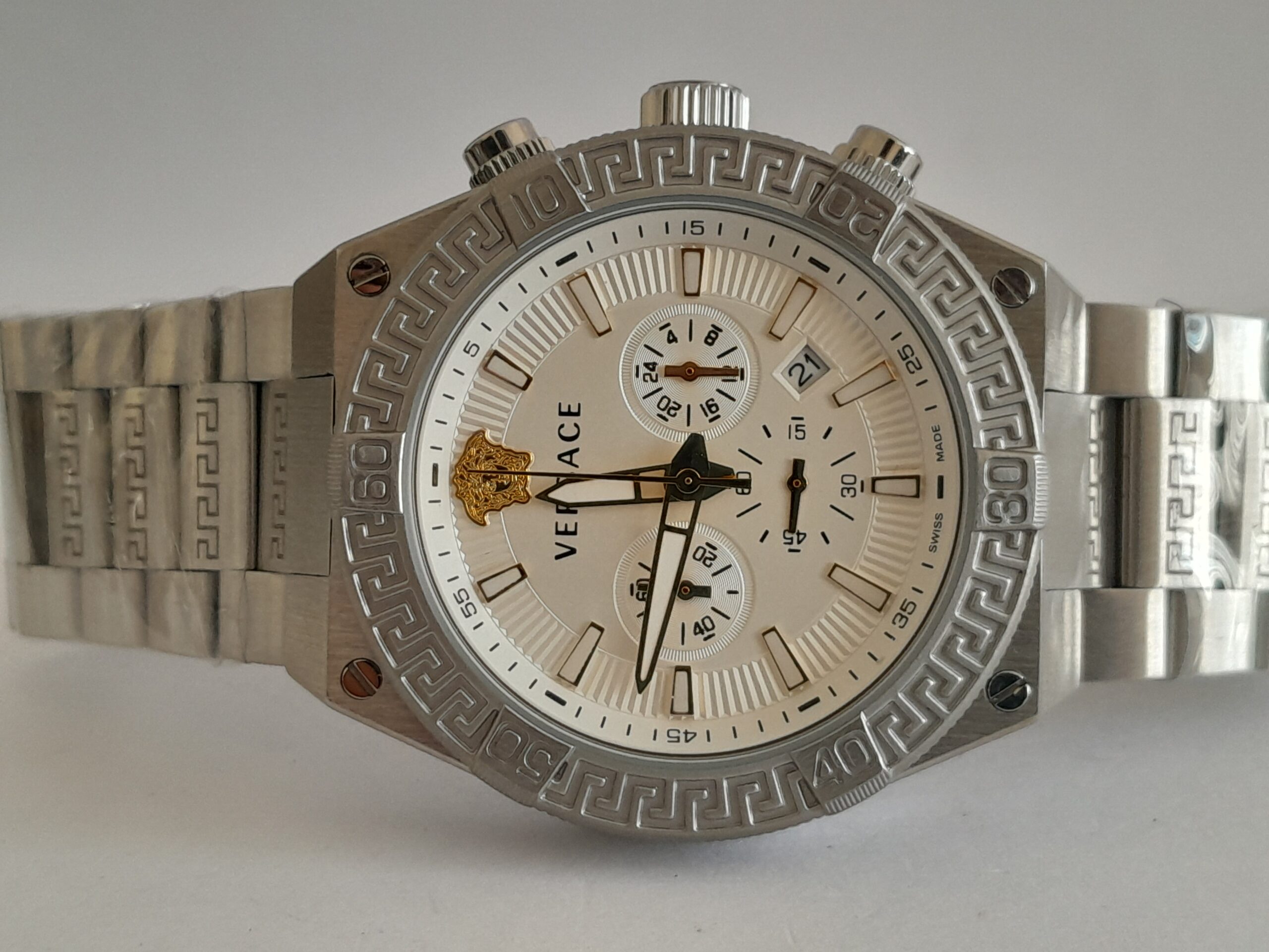 | REL VERSACE ACERO CAJA ACERO BISEL GRECAS VERSASE C/BLC LOGO VER CRONOMETRO |